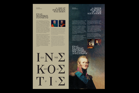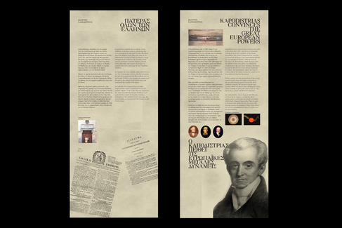 Ioannis Kapodistrias: In the Steps of a Great Leader A triptych of an exhibition, an educational program, and a theatrical play - specially written for this initiative - commemorating the 200 years since the Greek Revolution. A groundbreaking effort to explore the life of this great man. With significant unrevealed historical information, Kapodistrias' journey is seen through the eyes of the women he sacrificed for the sake of the only woman he served throughout his life: free and independent Greece.